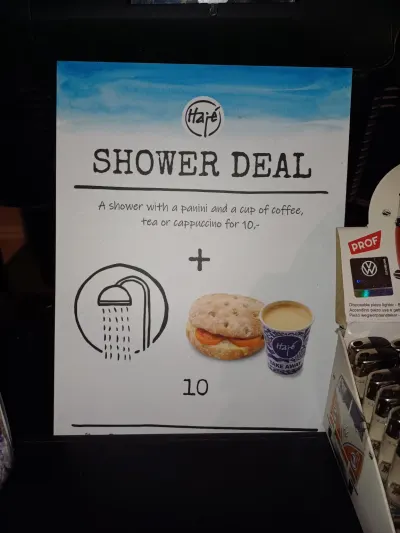 Изменение.Теперь душ стоит 10 евро,причём только для иностранцев.Для голландцев 2.50,как и раньше.В нагрузку к душу дают какой-то бургер и кофе.