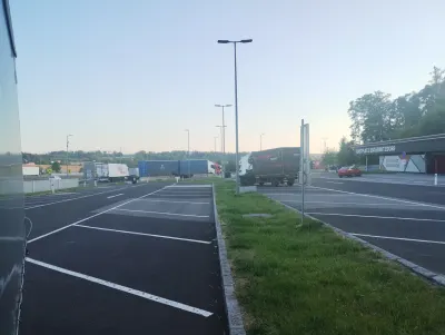 хороший ,чистий паркінг.. туалет безплатно,душ 1 євро..став після 20.00 то ще ззаду фур були місця
