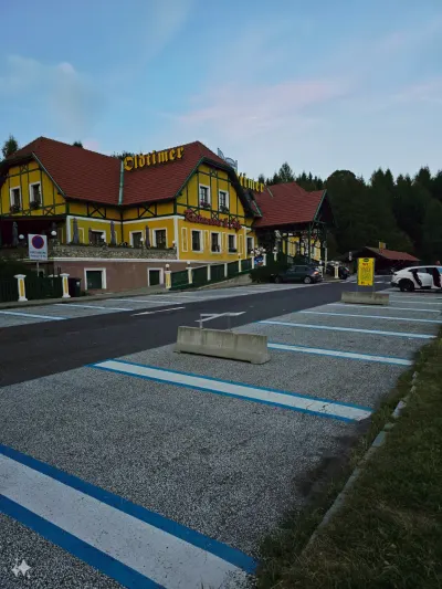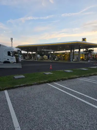 Parking ok, stoi się tyłem do autostrady. Oświetlony, jest wifi, prysznic na stacji 3e. Godzina 17 piątek, jest prawie pusty.
