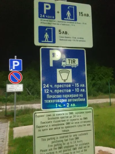 Parking mały ale okamerowany i oświetlony na MAX 3 ZESTAWY. Prysznic jest koszt 5 lewa, a parking płatny czasowo 1h-2 lewa lub 12h- 10 lewa, 24h- 15 lewa. Obsługa miła, cisza i spokój.