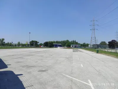 Parking 07.01 wolny, tylko kilka zestawów. Po opadach śniegu nikomu nie przyszło do głowy żeby trochę odśnieżyć. Płacić trzeba, 1e / godz. płatność w automacie przy barze kartą i gotówką.