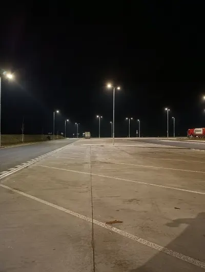 На вихідних паркінг напівпустий. Воду можна набрати на кутку приміщення заправки. Освітлений. Туалет безкоштовний. Душ хороший, але коштує 80 крон( 13,8 злотих) .