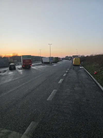 parking spoko, dość duży, obok bar, można coś zjeść, miła obsługa, darmowe WC, natomiast prysznic 30 dkk na żeton, czas 7 min, brak wieszaków, wszystko musisz położyć na glebę, także całą kosmetyczka i zalana wodą, także tutaj trochę słabo, ale cała reszta ok