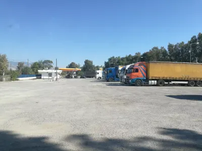 parking za free dość duży ale żwir i piach toaleta free czysta i pachnąca prysznica brak ruchliwa ulica obok lekki hałas