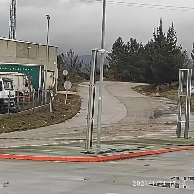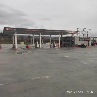 стоял 24часа. туалет бесплатно, душ 2,5евро. на въезде камера . небольшой магазин на заправке. WiFi нет. парковка чистая, ночью фонари.