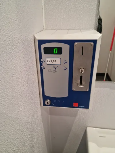 Для доступу потрібен сканер QR-kod, та WhatsApp. В жару безкоштовно помився водою, вода була тепла від повітря. Напій дорожче чим на АЗС.