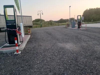Стає 10-15 машин. Душ, туалет на заправці. Є WiFi. Стіралка2.
