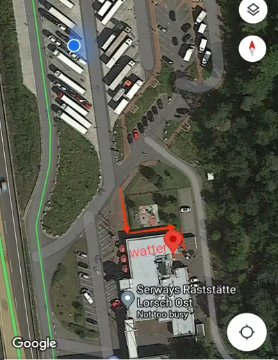 Хороший паркинг, душ 3 евро туалет 1 евро