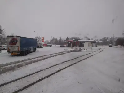 Хороший паркинг! Есть туалет и душ за 50 крон. Воды можно набрать в помещении заправки за кофейными аппаратами.