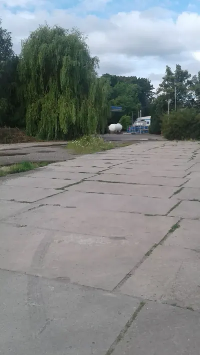 Betonowy parking z tyłu stacji....
