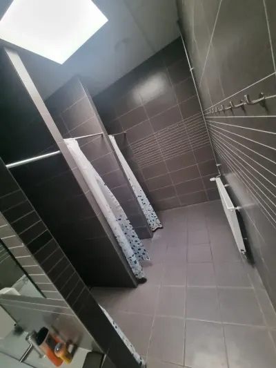 одне неподобство те що душ тільки холодний.все інше гарно, є туалет, чистий порожній паркінг. постійно їздить поліція. поруч купа магазинів. ніч 9 євро.