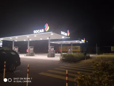 Хороший паркинг, места много для бусов, для фур около 15 мест, воды можно набрать, ключ от кранов с водой есть в магазине( краны те что на заправке)