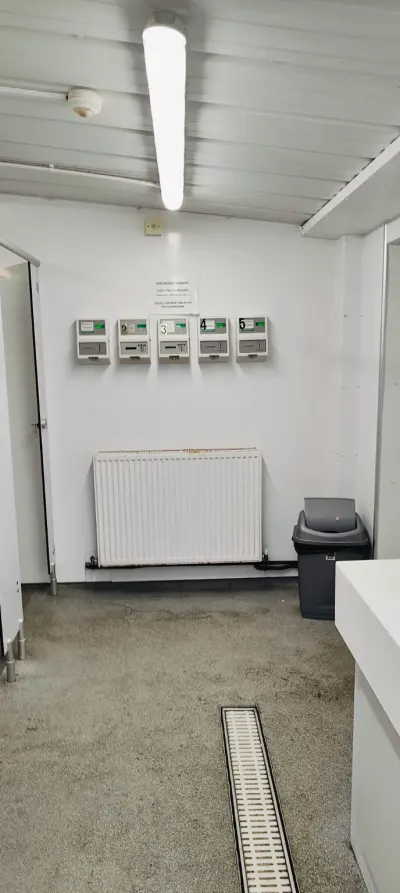 parking spokojny można stawać chłodnią jest 5 prysznicy nieogrzewanych na lato ok ale zimą tragedia w cenie parkingu jest tylko jeden prysznic wliczony kolejny kosztuje 3£ jeśli płacisz Snap dopłacasz 1 funt i otrzymujesz voucher na 5 funtów żeby coś zjeść kolejne 5/8£ musisz zapłacić w restauracji