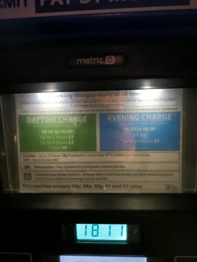 Płatność w automacie przy toaletach 7 funtów za ciężarówkę za 24h