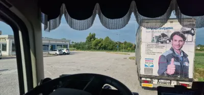 Godzina 18:10, na parkingu tylko dwa zestawy. Dużo miejsca, nawierzchnia asfaltowa. Ok