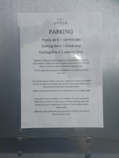 паркинг сейчас бесплатный, заправка закрыта воды набрать не где,душ 3 евро туалет бесплатно, возле ресторана ловит wi-fi