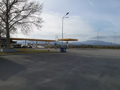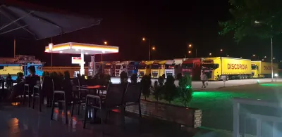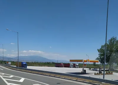 Не лохонитесь,заезд на паркинг тут 41.063363,23.351281,прямо с автобана съезд на заправку Shell,а то меня навигатор повёл через населённый пункт,чуть от туда выехал.А так паркинг норм,становился в субботу машин 10было.Паркинг 7,душ бесплатно,WC 50центов