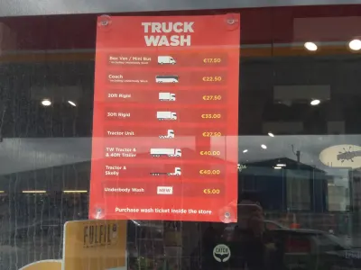 Parking dla ciężarówek płatny. Busy mogą zaparkować na parkingu dla osobówek, nikt się nie czepia. Toalety free. Prysznic free dla osób, które parkują na płatnym parkingu. Dla pozostałych prysznic 3 Euro. W środku 4 kabiny prysznicowe z umywalkami. Woda ciepła. Na miejscu również pralki i suszarki