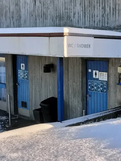 душ на еподромі, там і туалет. -безкоштовно.. смітник в центрі майданчика.